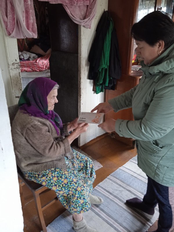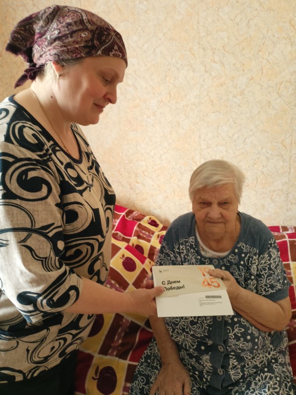 Работники отделений социально-бытового и социально-медицинского обслуживания на дому поздравляют ветеранов ВОВ и тружеников тыла с Великим праздником - Днем Победы!