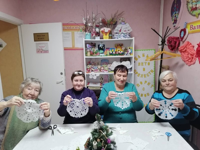 Для жителей отделения Спецжилдом состоялось очередное заседание клуба «Зеленый мир». Тема занятия: «Новогодние окна-снежинки». Вы знаете, что снег состоит из снежинок, а снежинки в свою очередь более чем на 90% состоят из воздуха. Именно воздух позволяет снегу падать так плавно и медленно, со скоростью около 1 км в час. На занятии участники клуба приступили к работе по изготовлению снежинок из бумаги, проявляя творческие способности. Для этого нужно немножечко усердия, чуточку терпения, капельку усидчивости, щепоточку смекалки. Все это залить фантазией и приправить хорошим настроением. Потому что только с хорошим настроением можно творить чудеса!