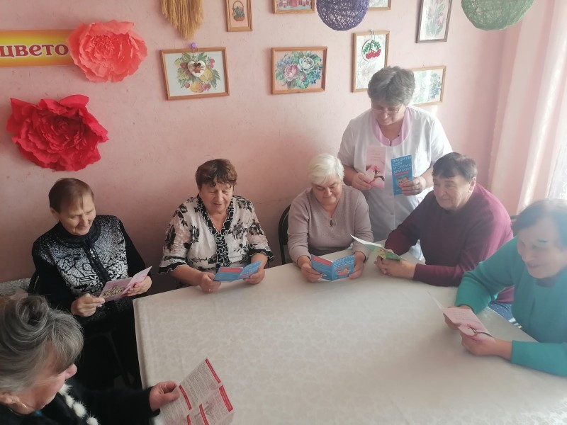 В целях повышения уровня информированности граждан пожилого возраста по вопросам профилактики ВИЧ и вирусных гепатитов В и С в отделении «Специализированный жилой дом для граждан пожилого возраста и инвалидов» было проведено мероприятие «ВИЧ ИНФО»: «Начинайте с себя-живите безопасно». Фельдшер отделения Беляева М.И. рассказала участникам мероприятия о СПИДе и профилактических мерах распространения ВИЧ-инфекции.