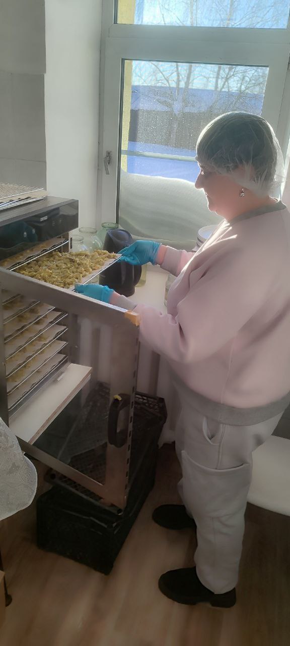 Сотрудники отделения "Специализированный жилой дом для граждан пожилого возраста и инвалидов" ГБУ "КЦСОН Краснобаковского муниципального округа" продолжают сушить продукты для изготовления сухих супов, отправляемых в зону действия СВО