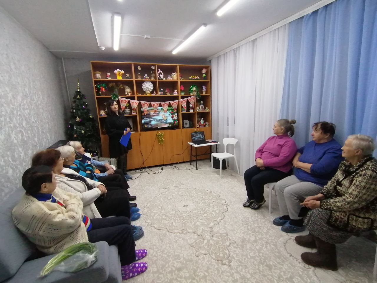 В канун Нового года в Спецжилдоме состоялся библиотечный час по теме: «Новый год в СССР». Мы вспомнили историю создания страны, авторитет которой был высок на всей планете! Участники мероприятия узнали, что впервые Новый год стали праздновать в 1935 году. Вернули старые атрибуты Рождества: Деда Мороза, елку, подарки под елкой мандарины, салат оливье, бой курантов, под который нужно обязательно загадать желание, торжественное обращение государственного лидера к гражданам страны. А уже в январе 1937 года у Деда Мороза появилась обязательная спутница – Снегурочка. Наше мероприятие было не только информационным, но и очень веселым!