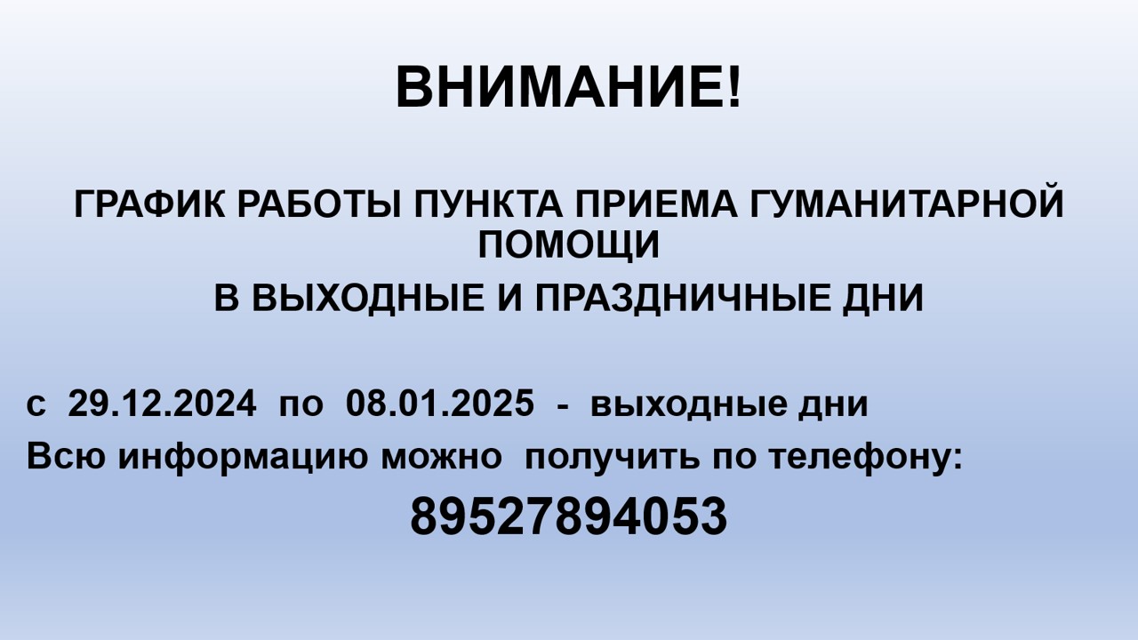 ГРАФИК РАБОТЫ ПУНКТА ГУМАНИТАРНОЙ ПОМОЩИ В ПРАЗДНИЧНЫЕ ДНИ
