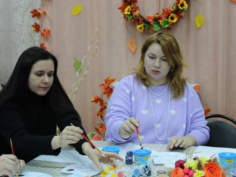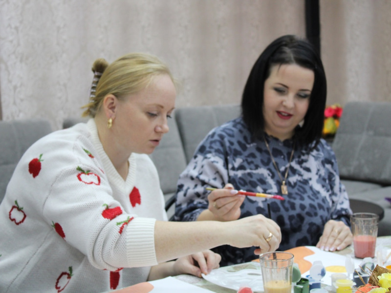 В Комплексном центре социального обслуживания населения Починковского муниципального округа прошел мастер-класс по созданию интерьерной картины, участниками которого стали мамы, в том числе – многодетные.