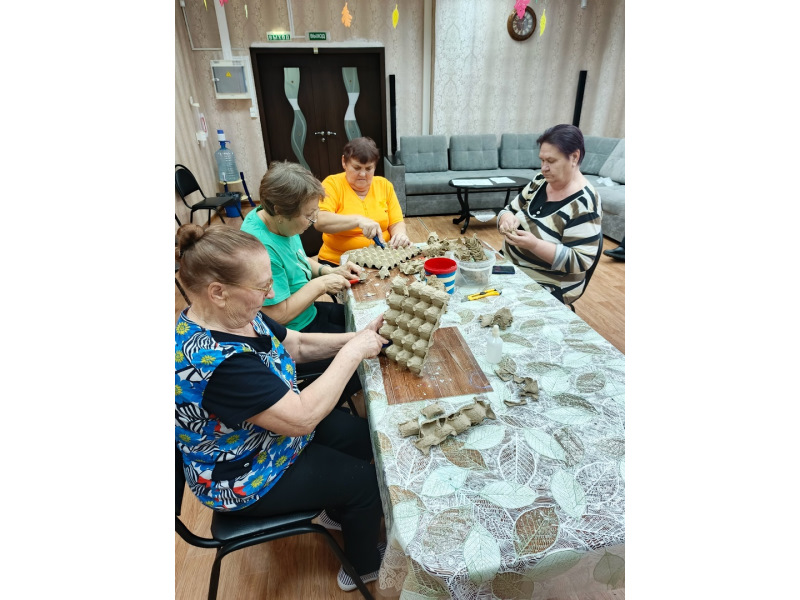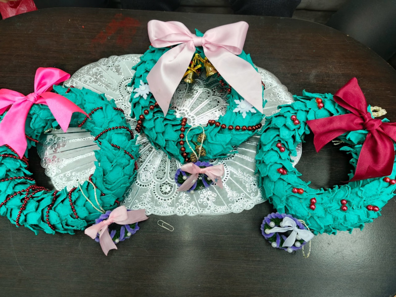 ✂В отделении дневного пребывания наши рукодельницы смастерили новогодний венок из лотков для яиц.