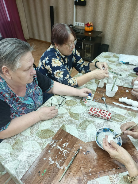 В отделении дневного пребывания отдыхающие изготовили забавного снеговика из простого и дешёвого материала - ваты.