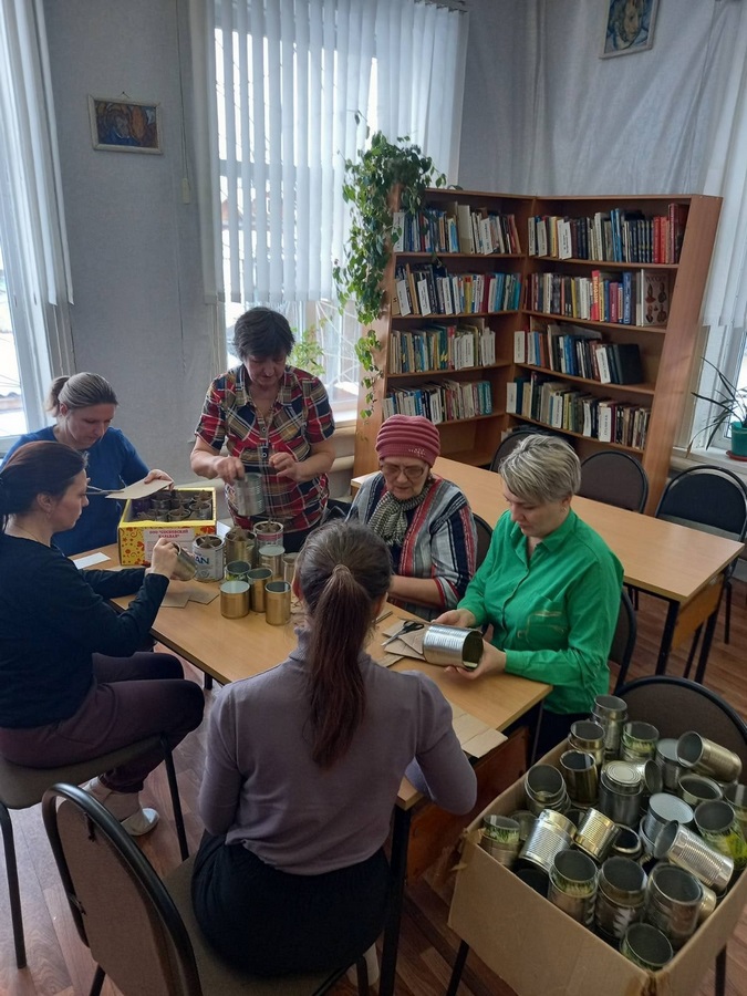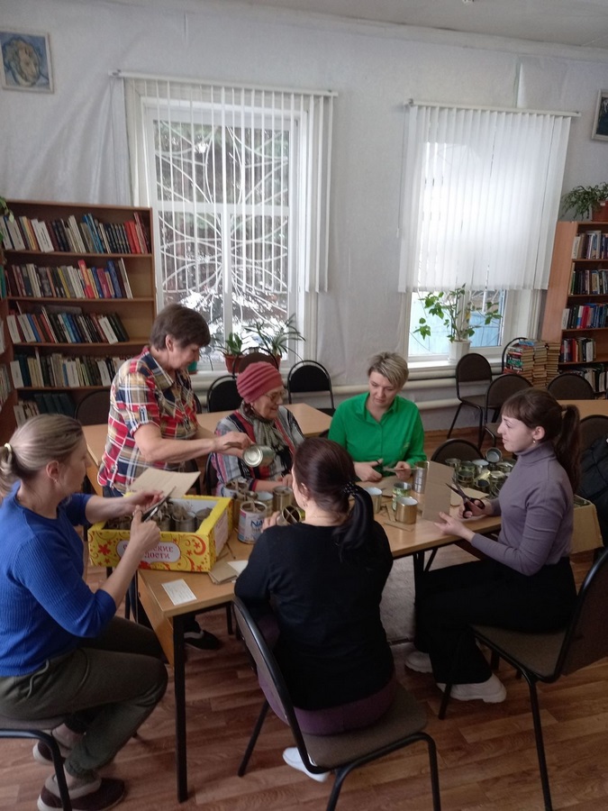 Тысячи волонтеров помогают фронту. И мы вяжем носки, теплые вещи, но к сожалению, это не спасает наших ребят в окопах от холода. На фронт нужны окопные свечи для обогрева в большом количестве. Со всех населенных уголков нашего района нам принесли жестяные банки.